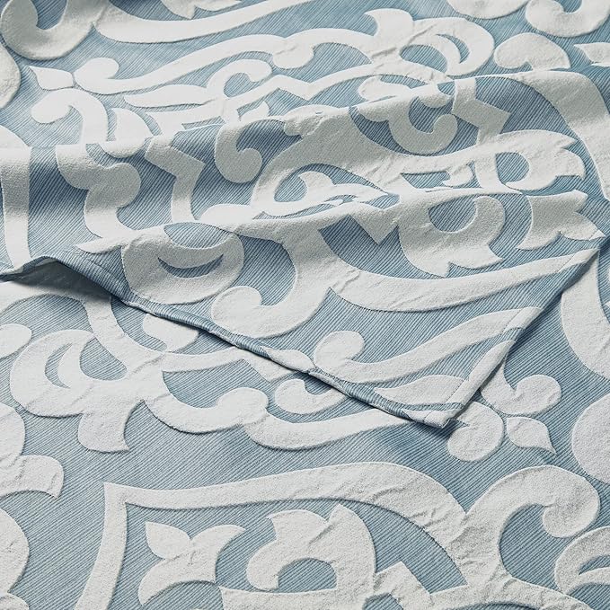 Esta lujosa cortina de ducha luce un magnífico diseño de medallón damasco sobre un fondo Jacquard estriado que aporta una rica textura y dimensión a su suntuosa apariencia. (No incluye forro).