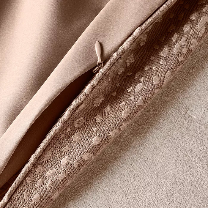 Inspirado en el intrincado y texturizado diseño de la piel de cocodrilo, el estampado es difuminado, abstracto y texturizado. El color es un cálido y moderno color nuez moscada con tonos superpuestos.