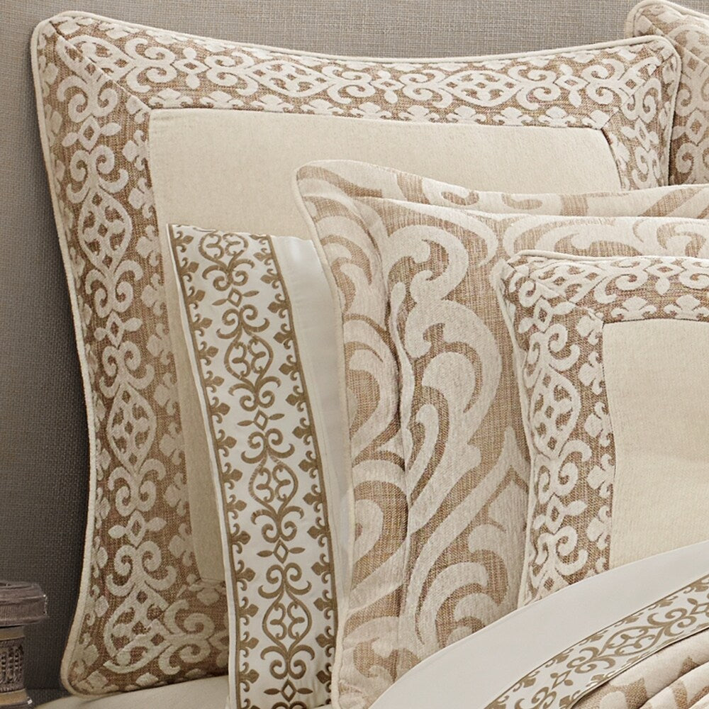 La funda Euro presenta una franja de corte ingleteada en la cara, centrada en chenilla color crema. Un ribete de 6 mm en chenilla color crema completa la almohada. La funda presenta un diseño enrejado. Los finos detalles incluyen una cremallera oculta.